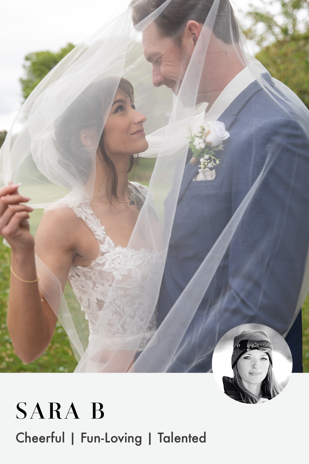 Meet Sara, a photographer whose life is as vibrant and multifaceted as her photography. Cheerful, talented, and fun-loving, Sara's personality shines through every aspect of her work, making her the perfect companion for your wedding day. A world traveler and sports fan, animal enthusiast and activist, pianist, ambitious author, and so much more, Sara brings a rich tapestry of experiences to her photography, infusing each shot with creativity and passion.